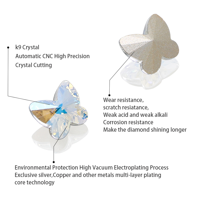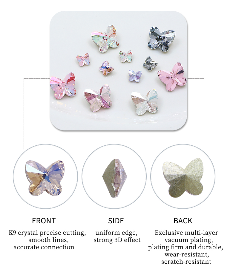 DZ 3140 5*5mm butterfly shape crystal fancy stone for nail art