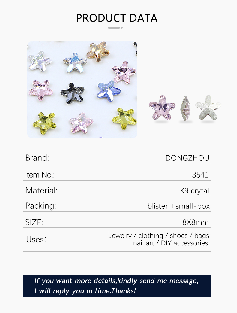 DZ 3541 8*8mm Starfish shape effect color crystal fancy stone for nail art