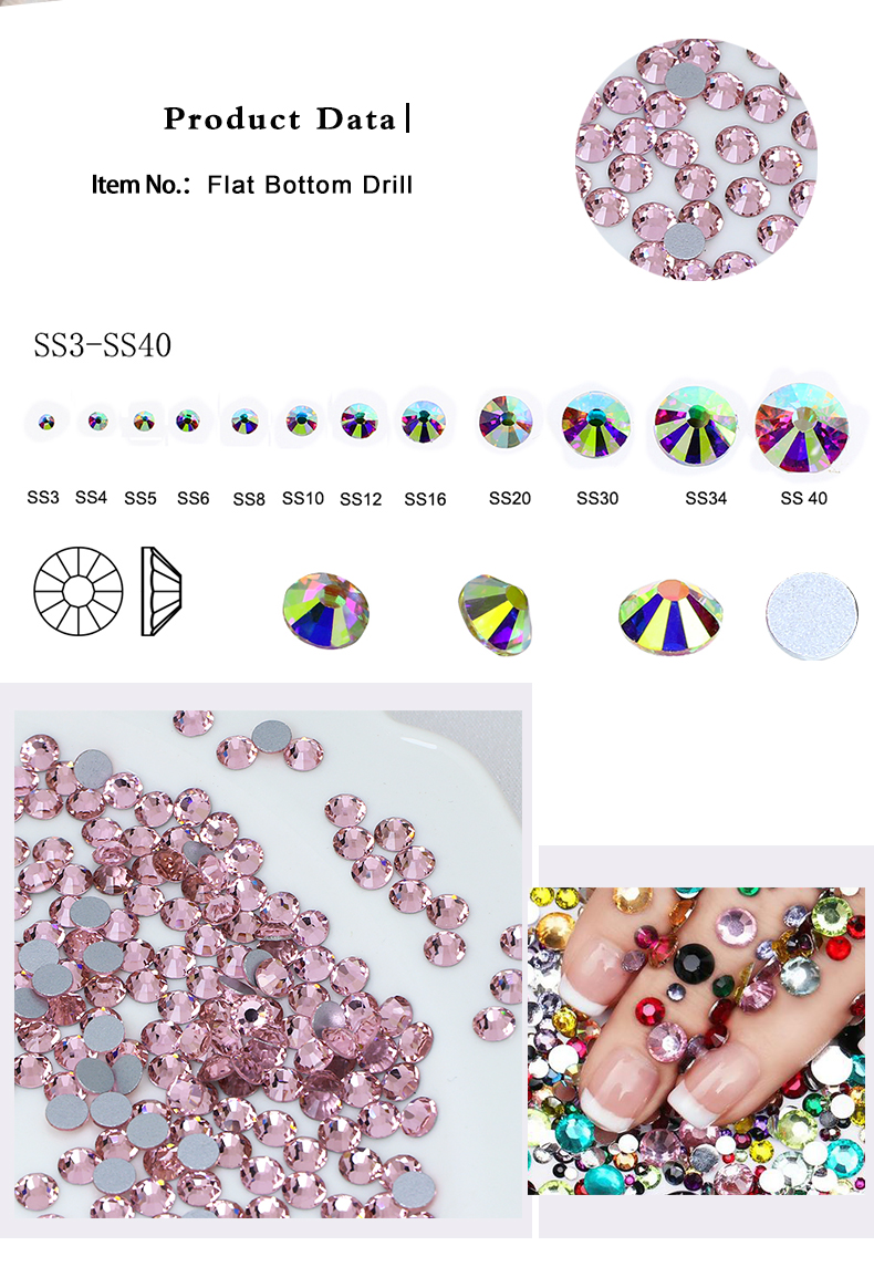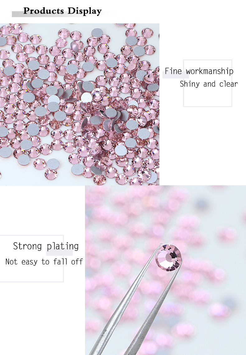 non hotfix light pink color round shape flatback stone for nail art clothes decoration ss3-ss20(1440pcs/pack)