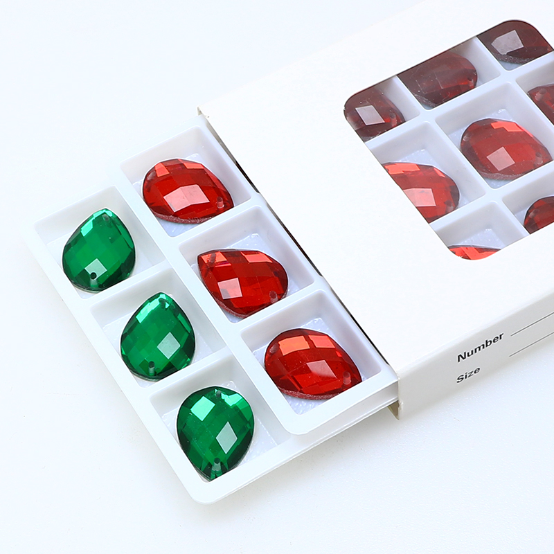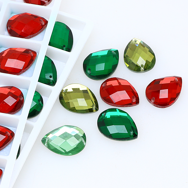 DZ-1033 drop shape with 2 hole cut flatback glass stones for clothing